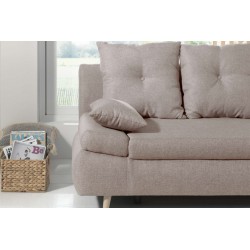 Ideală pentru optimizarea spațiului, canapeaua Luis are o funcție extensibilă, perfectă pentru a găzdui ocazional invitați sau pentru seri relaxante în fața televizorului. Este suficient să tragi șezutul și să ajustezi spătarul pentru a obține un pat de 154x200 cm. De asemenea, canapeaua dispune de un compartiment de depozitare sub șezut, ideal pentru păstrarea păturilor și pernelor.