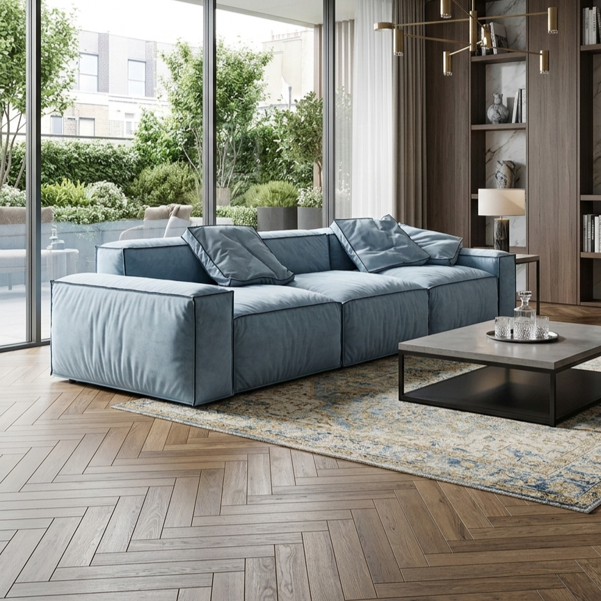 Disponibilă în dimensiuni variate: 130x96x72 cm, 210x96x72 cm, 275x96x72 cm și 350x96x72 cm, canapeaua ROCO redefinește confortul și rafinamentul. Îmbrăcată într-o catifea luxoasă, acest model fix impresionează prin designul său scandinav sofisticat.