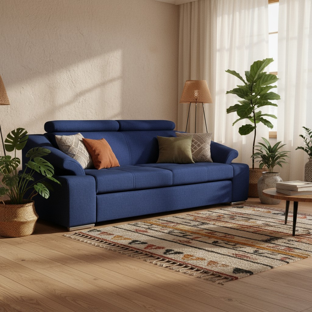 Canapeaua se face pe comandă, așa că o poți personaliza în funcție de nevoile tale. Poți alege combinația de culori și materiale care îți place, sau dimensiunile care se potrivesc spațiului tău