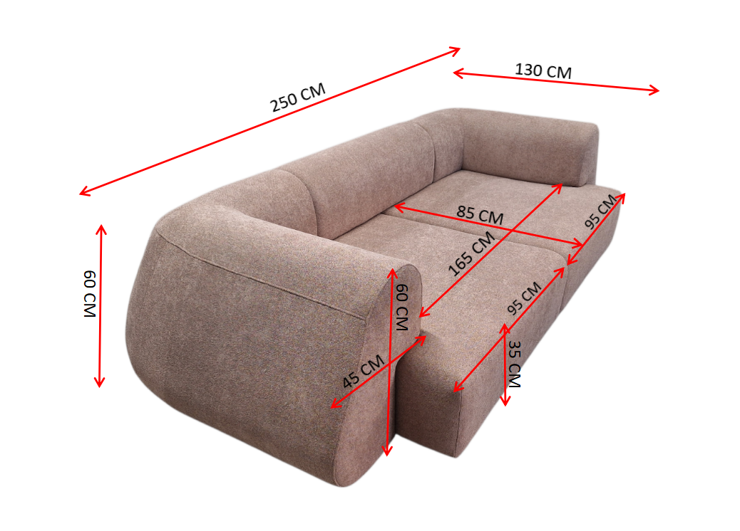 Structura canapelei este realizată din materiale rezistente, proiectate pentru stabilitate și durabilitate în utilizarea zilnică. Fiecare detaliu este gândit pentru a menține forma, confortul și aspectul estetic pe termen lung.