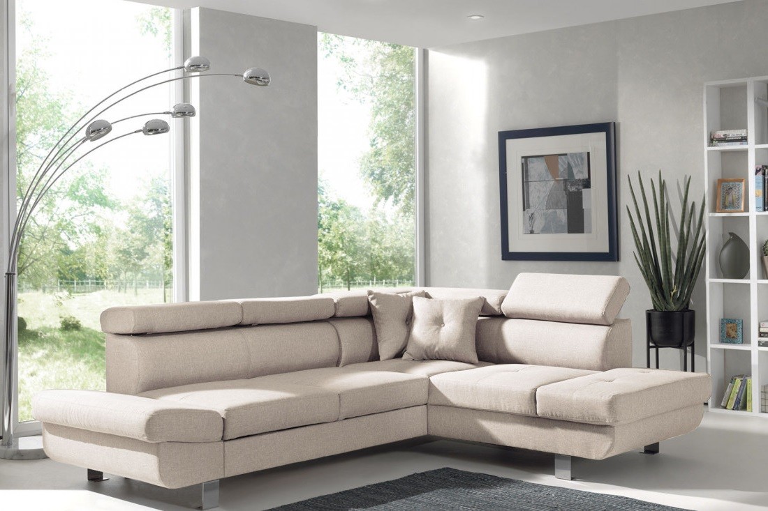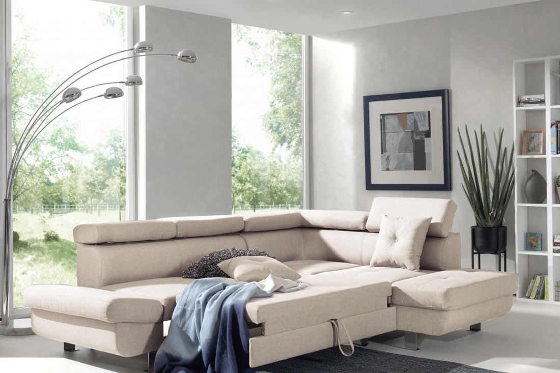 Este ideal pentru spațiile optimizate şi pentru a primi ocazional oaspeți, colțarul Lima este echipat cu o funcție de extensie foarte practică care permite să se extindă în cateva secunde, la dimensiuni 185x125 cm.