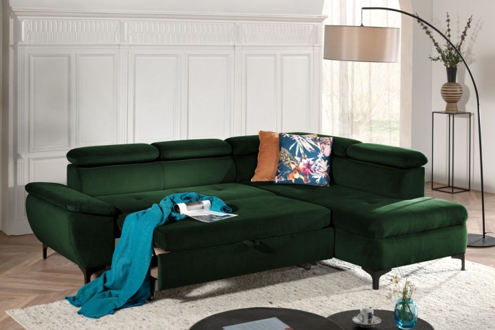 Linii curbate, cu un caracter aparte, invelit in stofă și picioare din lemn natur, coltarul Nicholas poate fi utilizat în multe camere de zi. Are funcții foarte practice, cum ar fi 3 tetiere reglabile în mai multe poziții, precum și o funcție convertibilă ușor pliabilă
