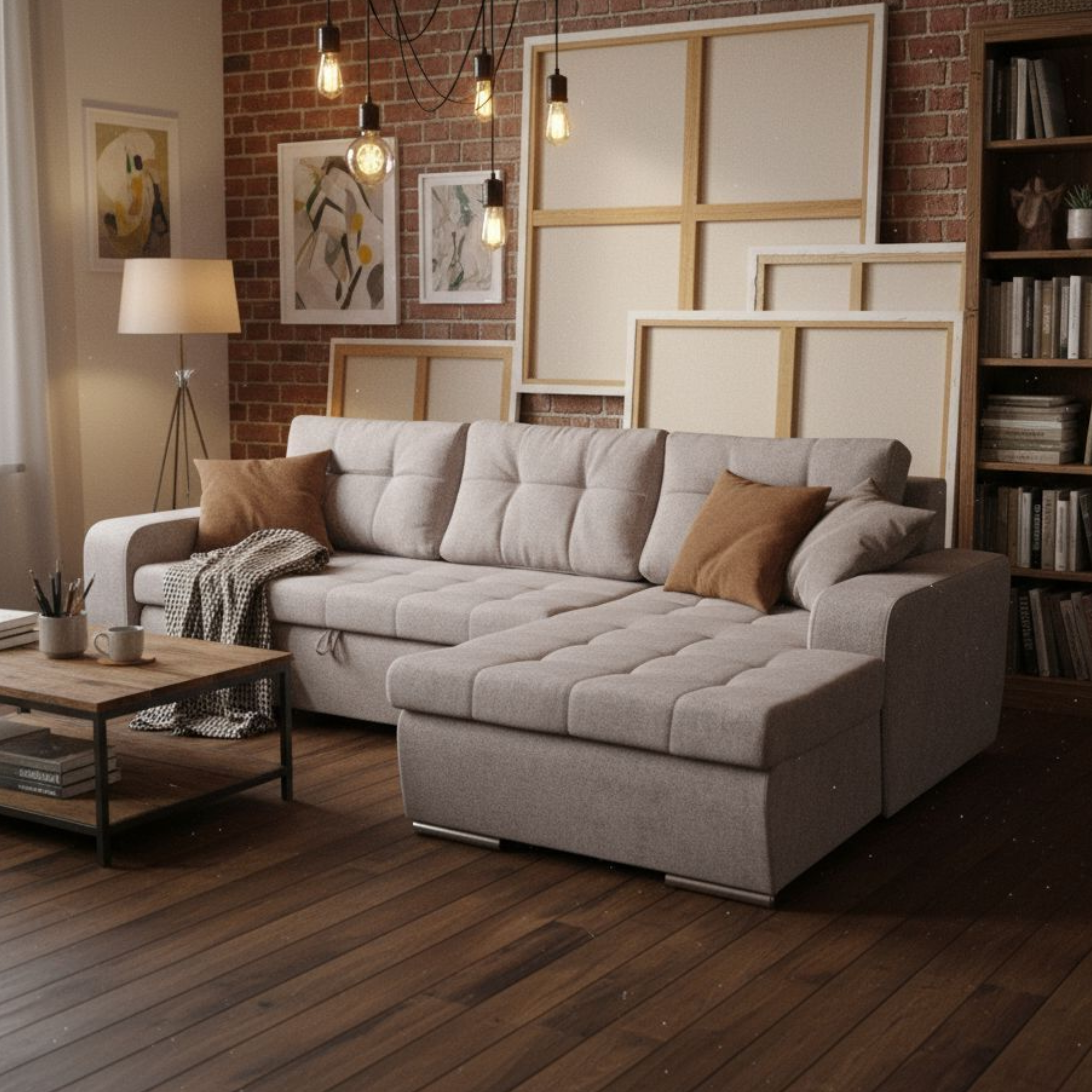 Cu un cadru solid și durabil care este esențial pentru a susține greutatea utilizatorilor și a preveni deteriorarea colțarului în timp. Spuma de înaltă densitate oferă confort și susținere adecvată pentru utilizatorii care stau sau dorm pe colțar.