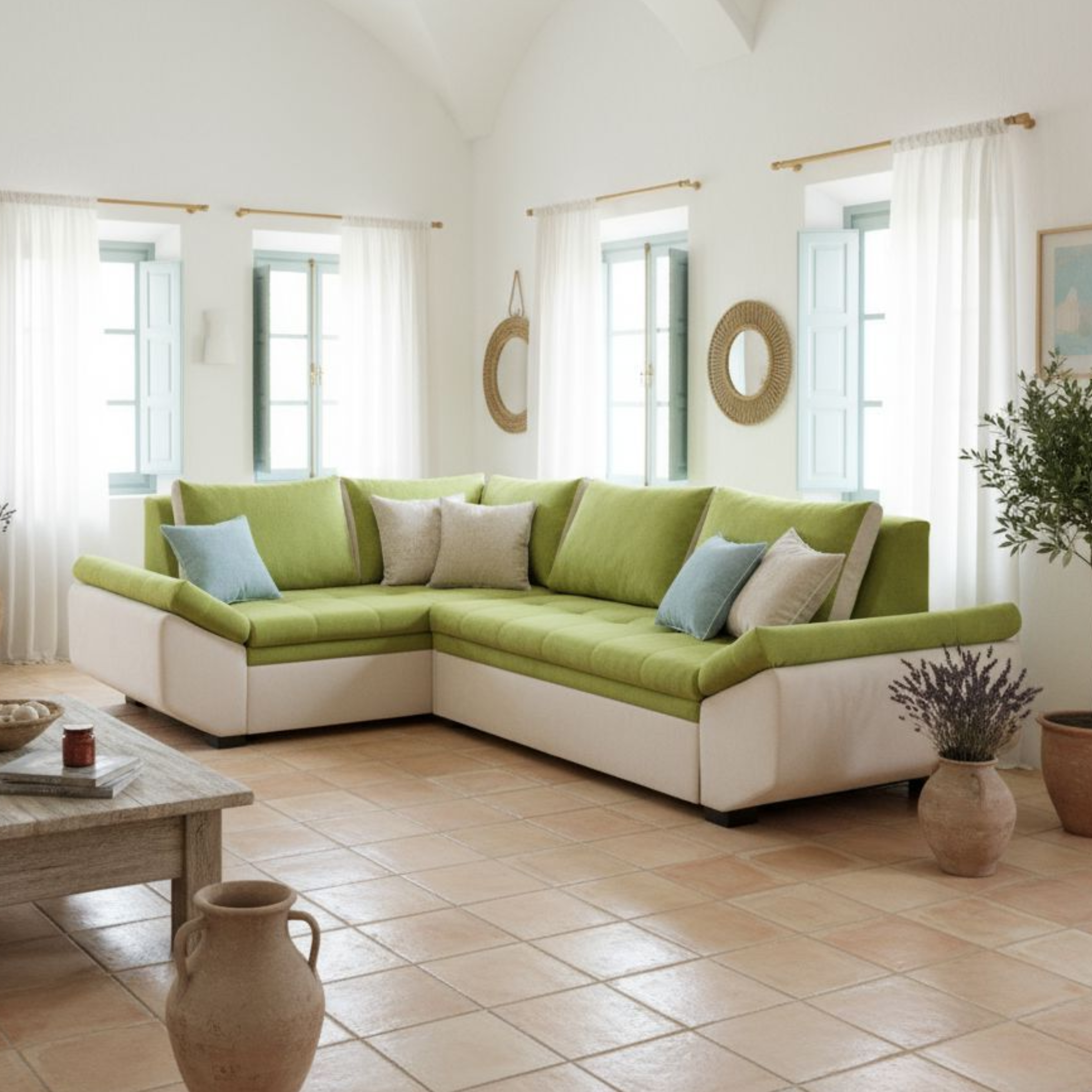 Colțarul este conceput cu un design modern și atrăgător, cu linii curate și conturate care se potrivesc perfect într-o varietate de decoruri interioare contemporane. Aspectul său proaspăt și elegant aduce o notă de sofisticare în orice cameră.