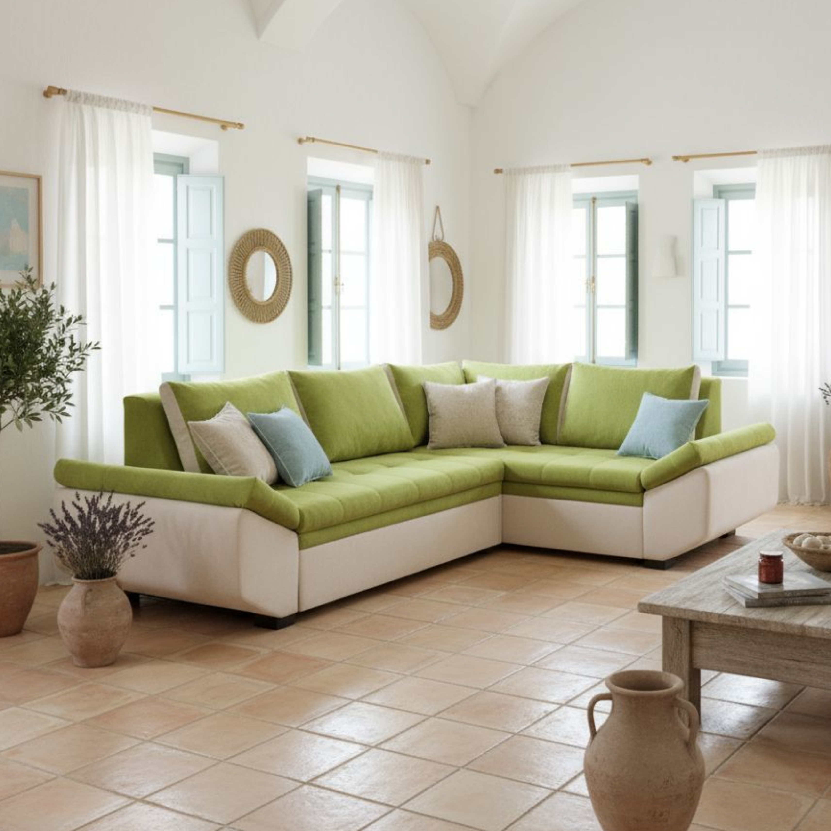 Colțarul este conceput cu un design modern și atrăgător, cu linii curate și conturate care se potrivesc perfect într-o varietate de decoruri interioare contemporane. Aspectul său proaspăt și elegant aduce o notă de sofisticare în orice cameră.