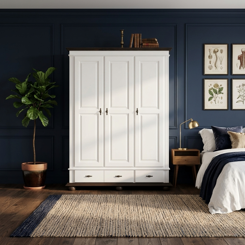 Dulapul Seva cu 3 uși din lemn masiv este alegerea perfectă pentru un dormitor echilibrat. Oferă spațiu generos de depozitare, fără să ocupe excesiv camera, fiind ideal pentru organizarea eficientă a hainelor.
