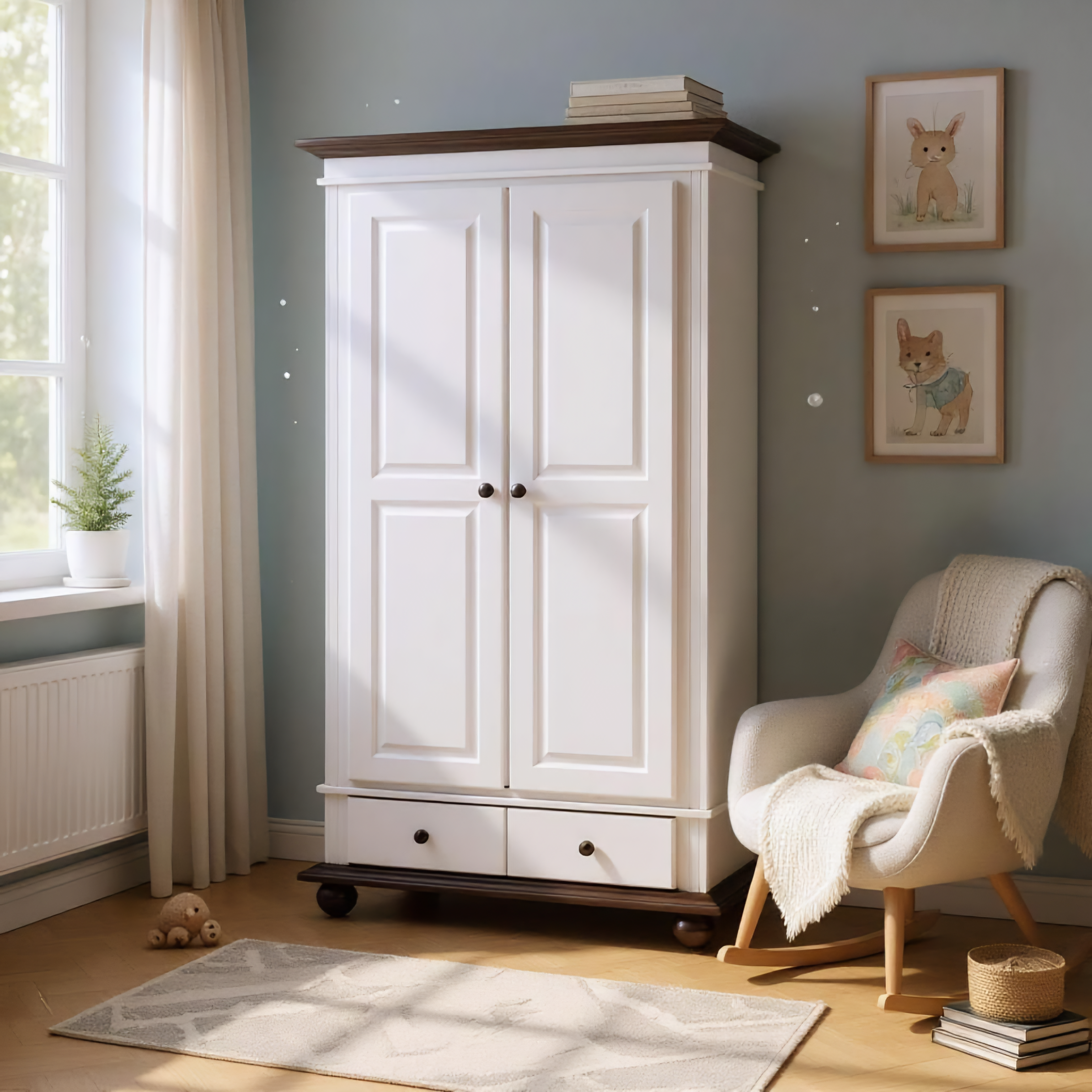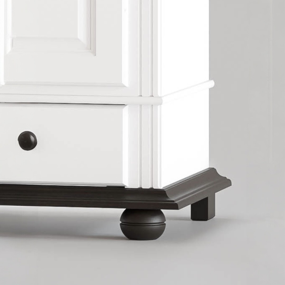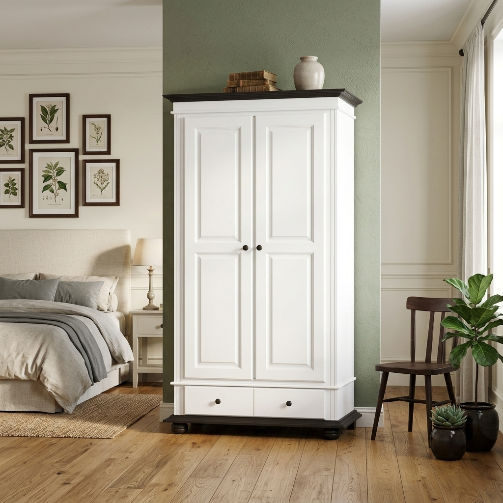 Disponibil în variante de culoare precum alb, alb cu natur sau alb cu nuc, dulapul se integrează ușor în decoruri moderne, clasice sau scandinave.