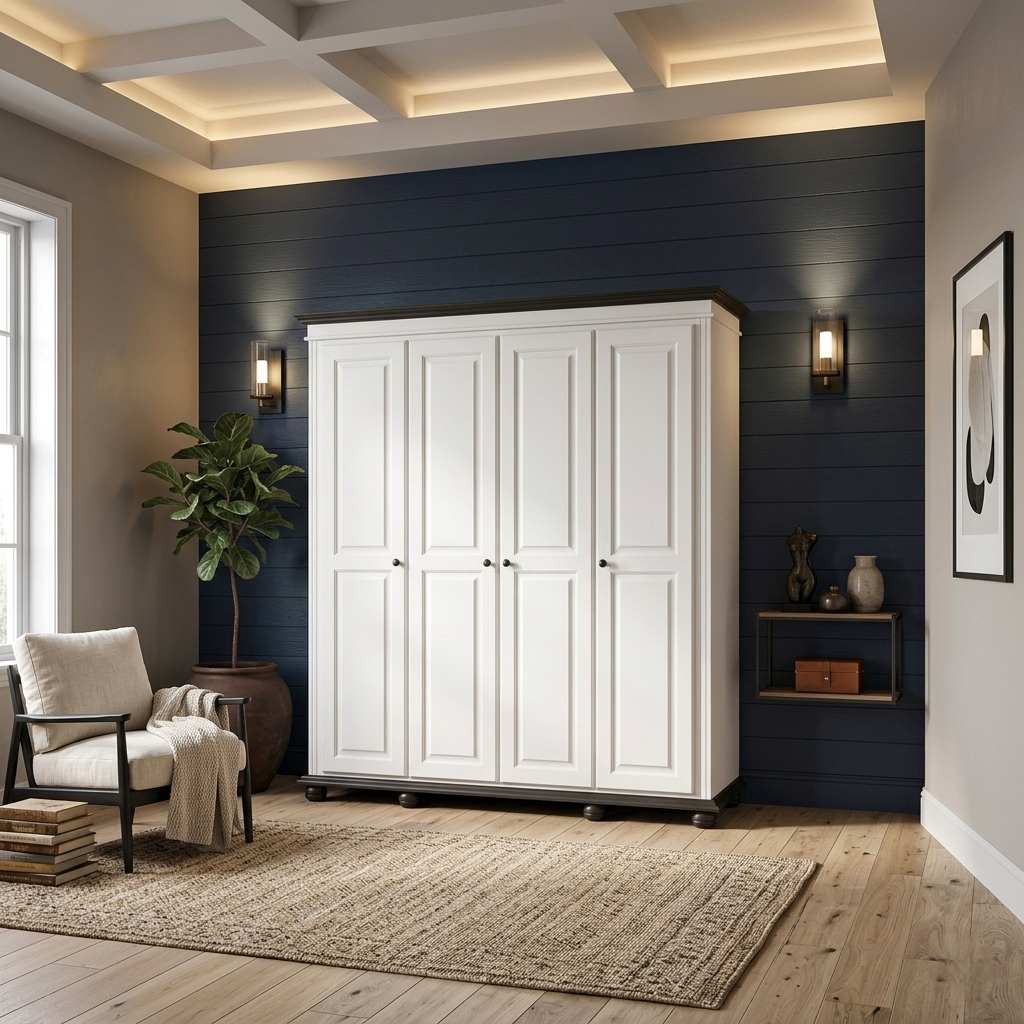 Dulapul SEVA cu 4 uși pline este alegerea ideală pentru cei care preferă un mobilier simplu, fără elemente vizuale suplimentare. Designul curat îl face ușor de integrat în orice dormitor.