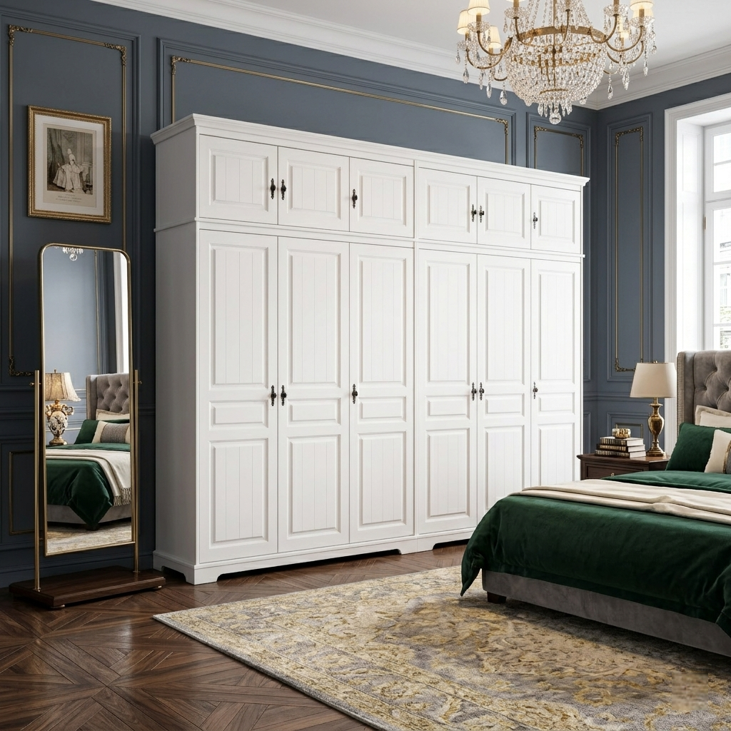 Dulapul CLEO 6 uși cu suprapozabil este o piesă de impact pentru dormitoare spațioase. Îmbină eleganța clasică cu o prezență vizuală puternică.