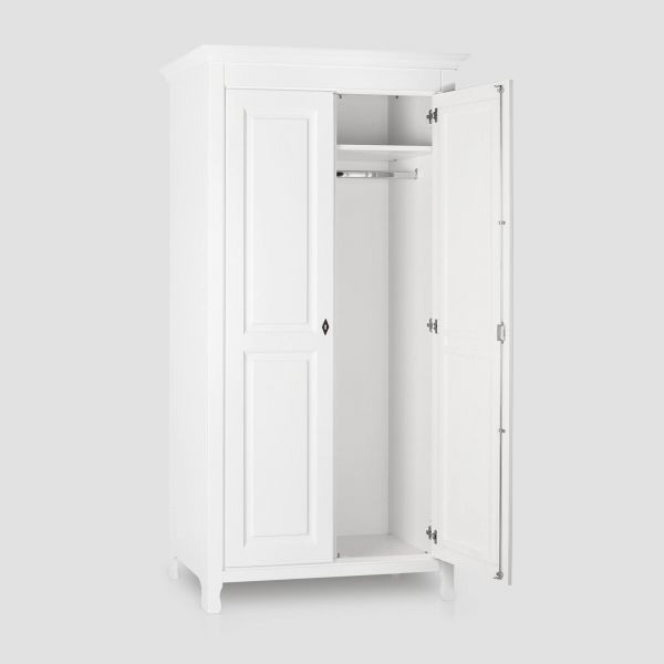 Dulapul Leon aduce puritatea designului scandinav în dormitorul tău. Construit din lemn masiv alb, fără detalii inutile, doar funcționalitate pură și linii curate.Dulap Leon din lemn masiv alb, design minimalist elegant. 2 uși, compartimente interioare, fără sertare. Perfect pentru dormitoare moderne și scandinave.