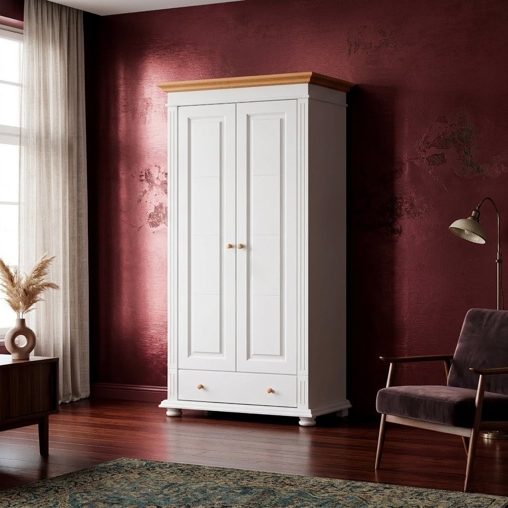 Realizat din lemn masiv de molid, dulapul oferă rezistență în timp și stabilitate, fiind potrivit pentru utilizare zilnică.