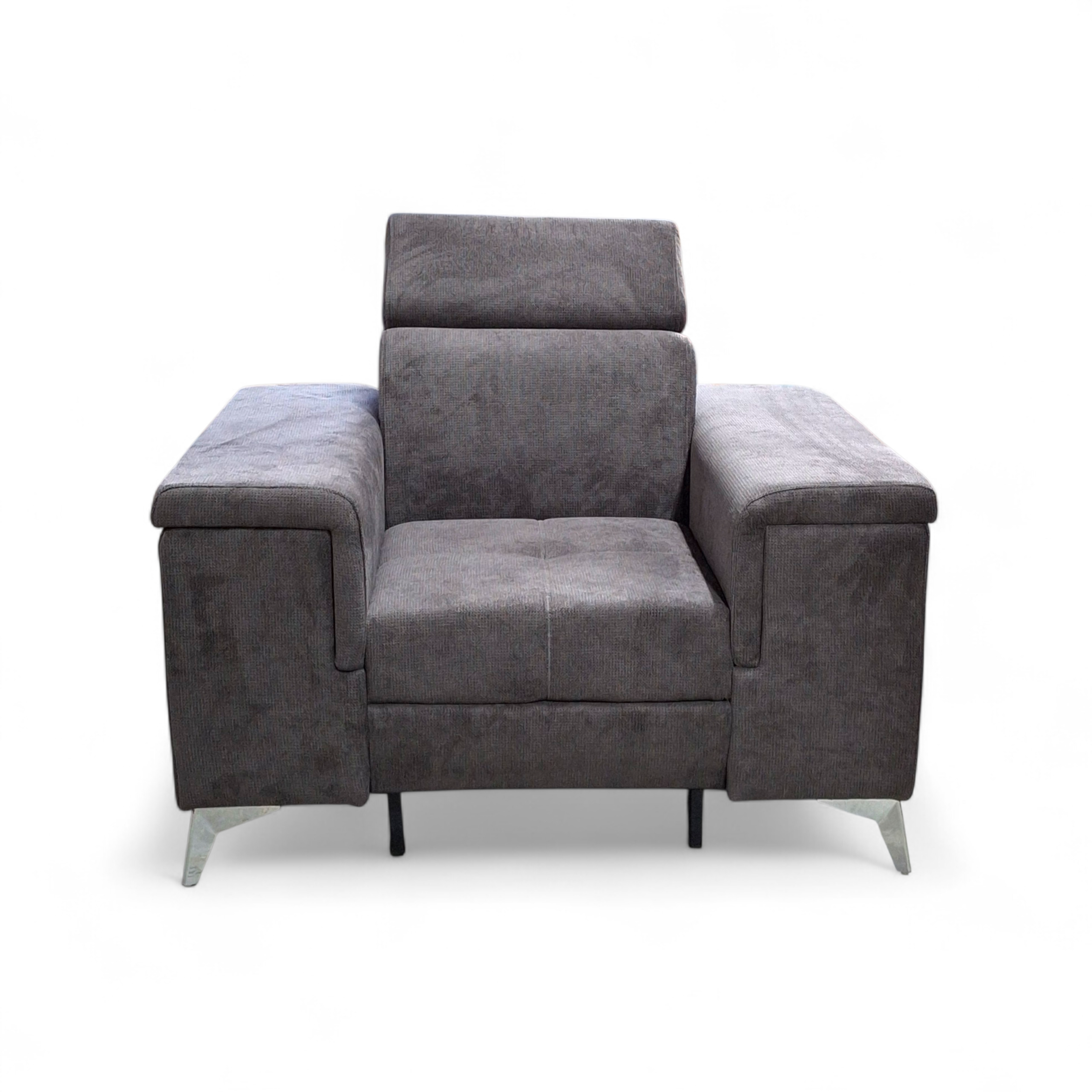 Picioarele metalice, înalte, conferă un aspect modern și aerisit, facilitând totodată curățarea ușoară a spațiului de sub fotoliu. Structura solidă și materialele atent selectate garantează durabilitate și stabilitate în timp.