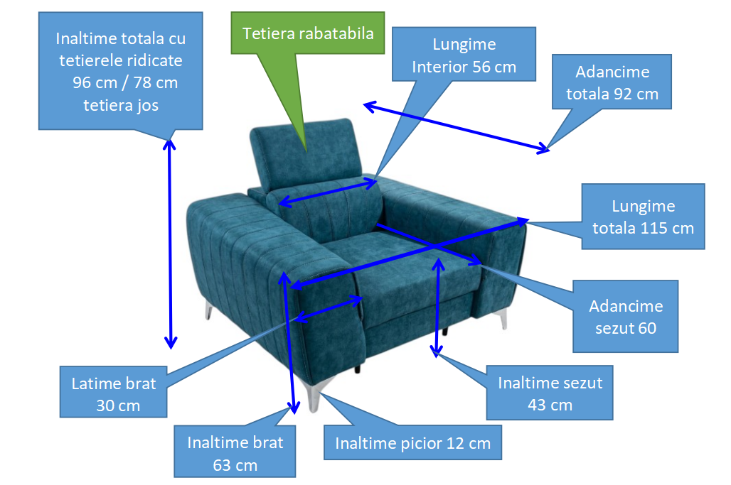 Acest model de canapea poate fi personalizata în funcție de dimensiunile dorite (în limita posibilităților tehnice).