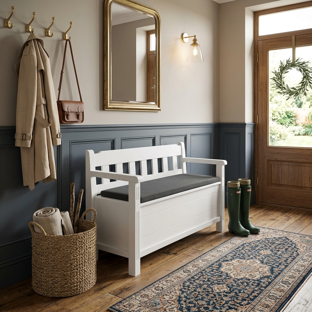 Datorită designului versatil, banca poate fi utilizată în mai multe încăperi. În hol este perfectă pentru încălțare și depozitarea accesoriilor, în dormitor poate servi ca spațiu suplimentar pentru lenjerii, iar în living completează decorul oferind loc de ședere.