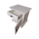 Este foarte incapatoare si totodata atragatoare, fiind dotata cu un sertar si o usa cu spatiu de depozitare destul de generos, usor de integrat in dormitor pe langa alte piese de mobilier din lemn masiv