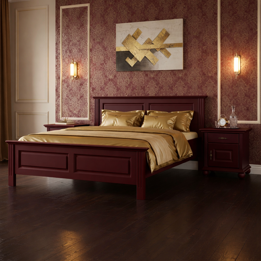 Noptiera SEVA din lemn masiv, finisată în nuanța intensă Bordo Imperial RAL 3007, aduce un plus de eleganță și personalitate dormitorului. Culoarea profundă, cu accente sofisticate, transformă piesa într-un element decorativ distinct, potrivit atât pentru interioare clasice, cât și pentru amenajări moderne cu influențe elegante.
