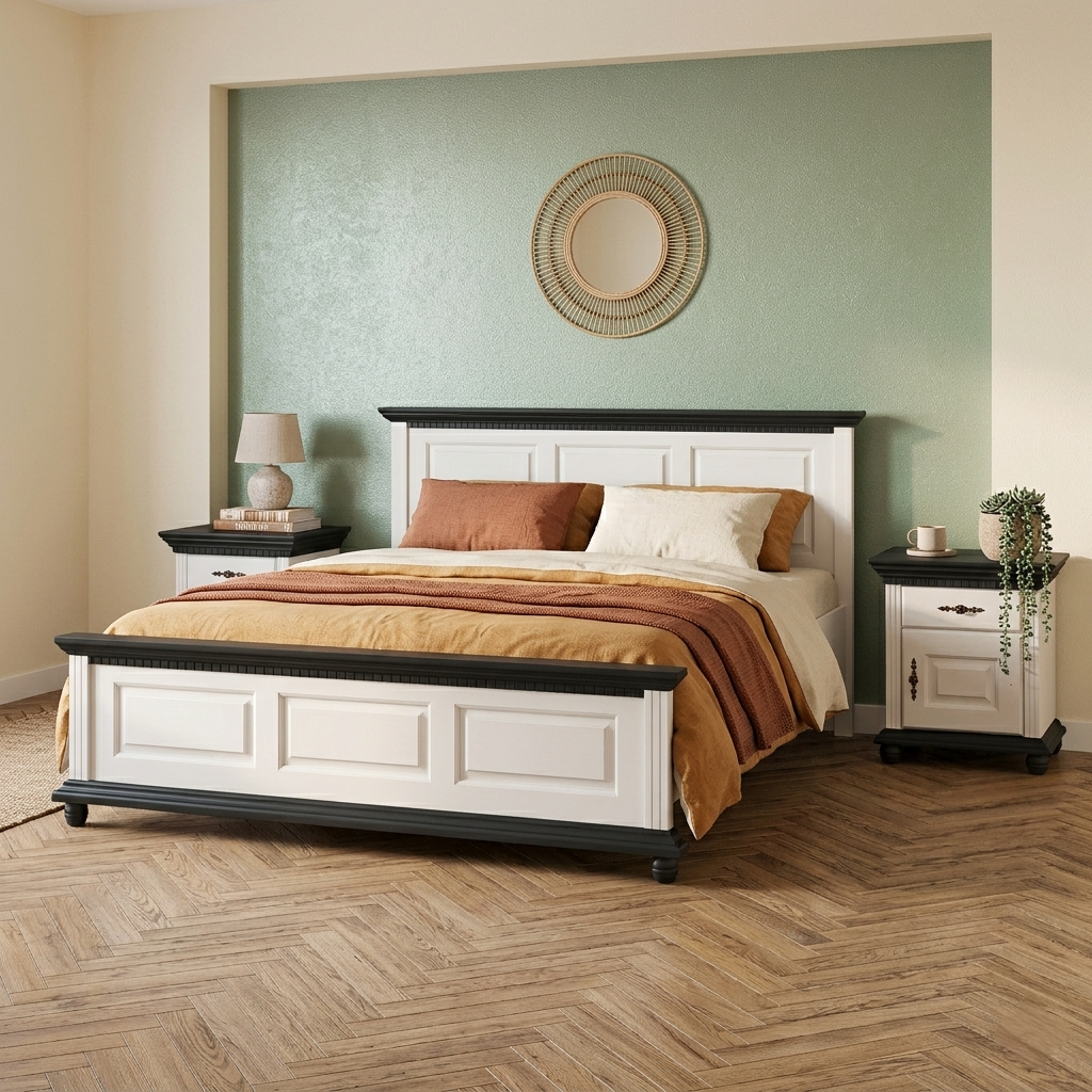 Patul Bucov 180x200 este conceput pentru cei care își doresc un pat solid, stabil și elegant. Realizat din lemn masiv, finisat in nuanta de alb cu ornamente nuc, oferă un desig aparte si o durabilitate ridicată, cat și un aspect premium, potrivit pentru dormitoare moderne sau clasice.