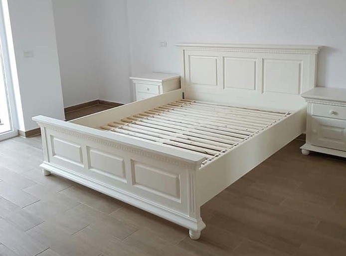 Pat 180x200 din lemn masiv, model Bucov – construcție solidă, design elegant și confort king size.