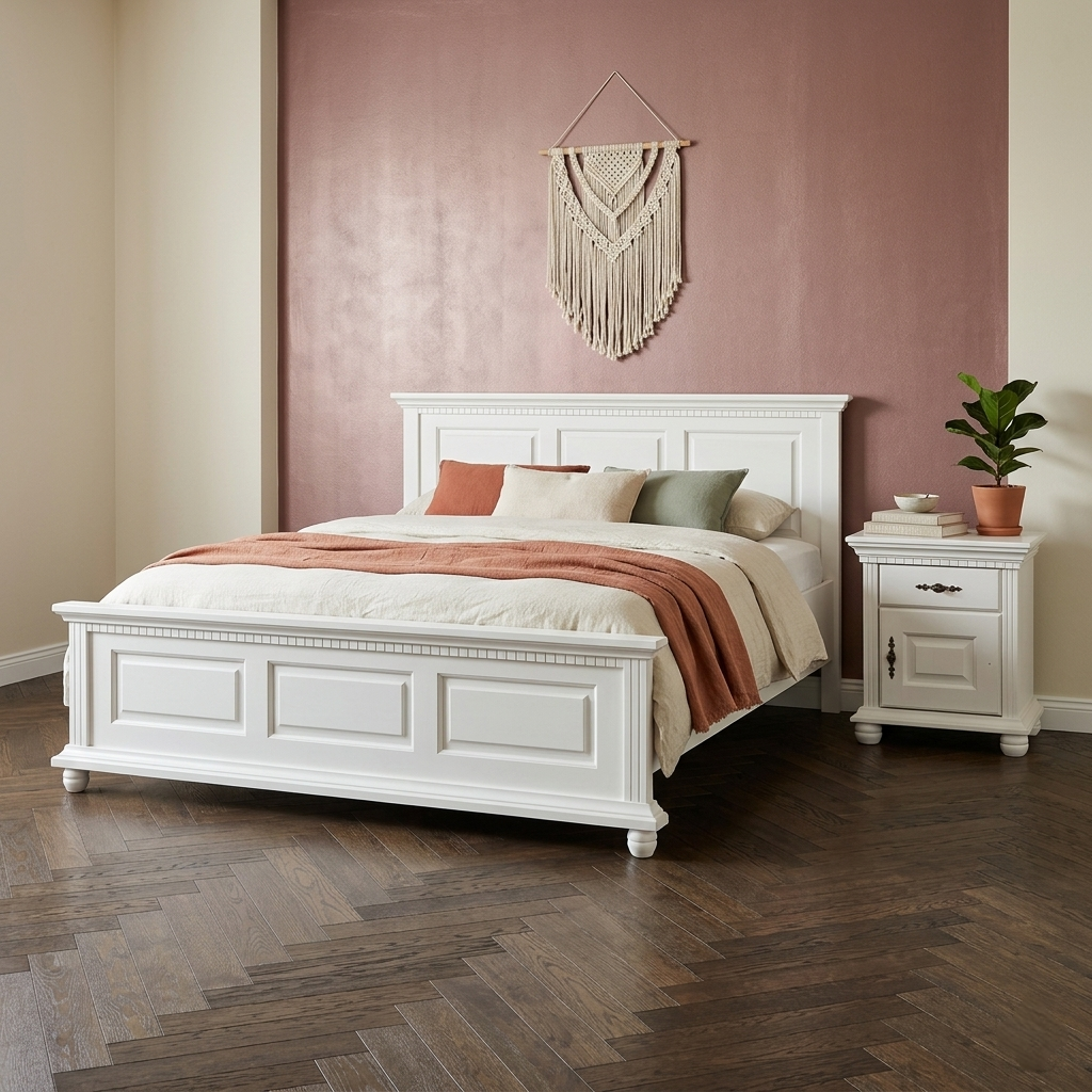 Cauți un pat solid, care să nu scârțâie și să reziste în timp?. Patul Bucov 160x200 din lemn masiv alb este alegerea ideală pentru un dormitor modern și stabil.