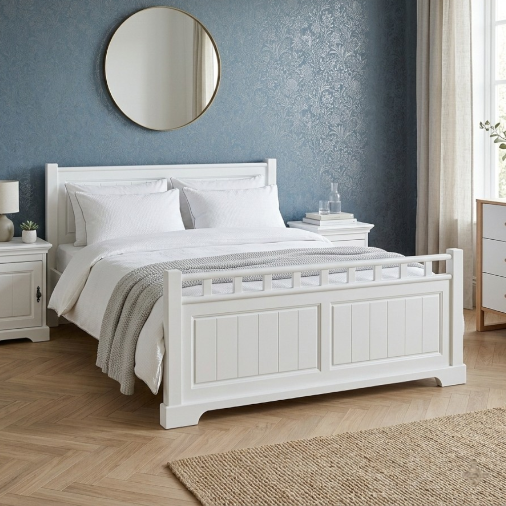 Poti achizitiona separat si noptiere, dulap cu 2,3 usi sau comoda din aceasi colectie cu acest pat
