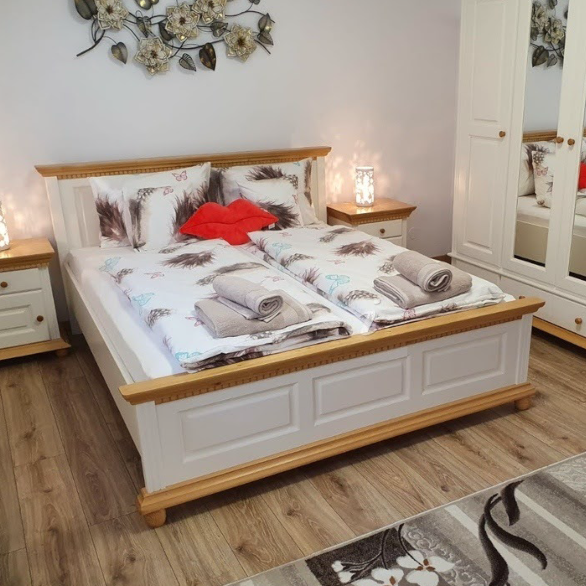 Patul Bucov din lemn masiv este o soluție de mobilier de calitate superioară, proiectată pentru a combina durabilitatea materialelor naturale cu un design echilibrat și elegant. Realizat integral din lemn masiv de molid, acest pat oferă confort optim și stabilitate ridicată pentru utilizare zilnică.