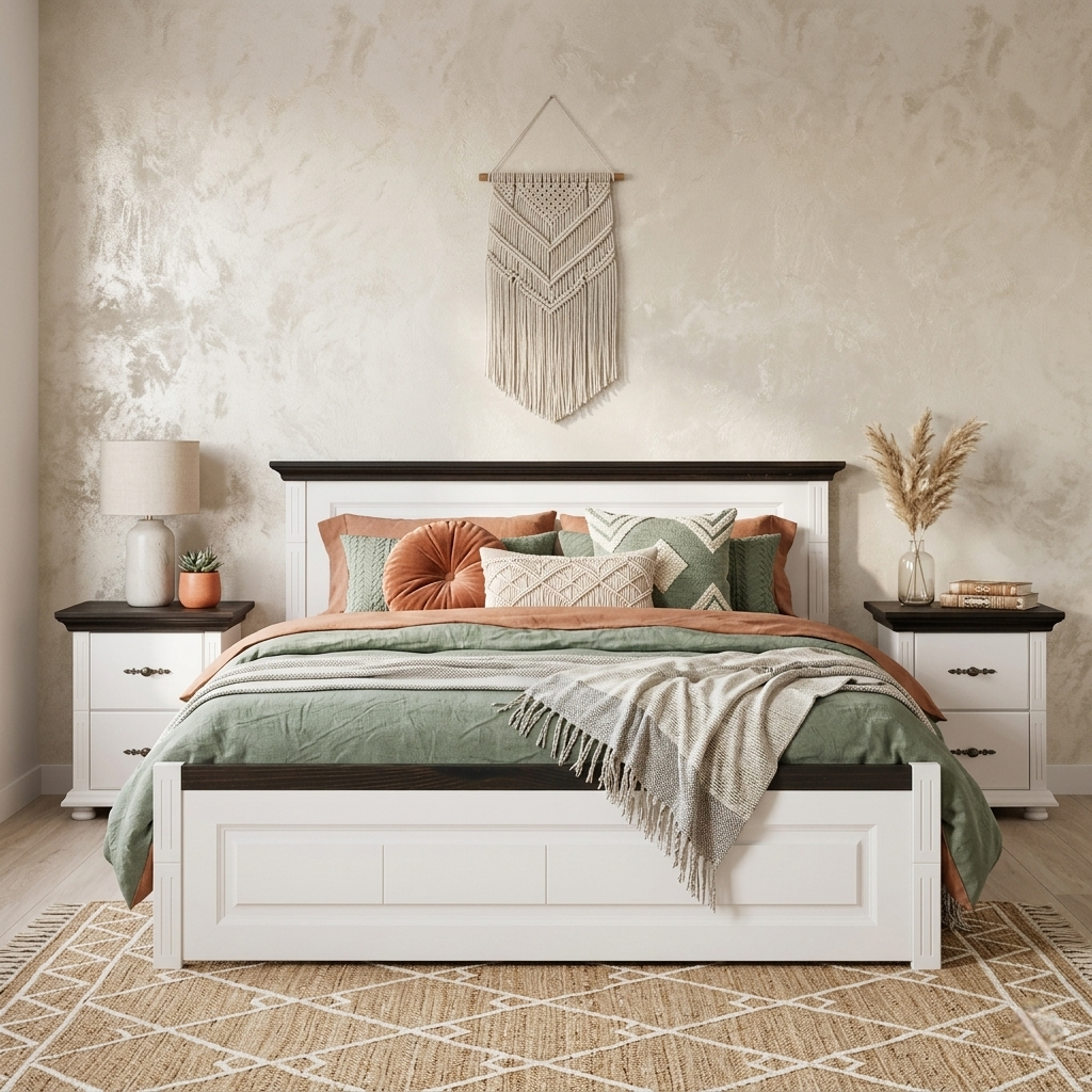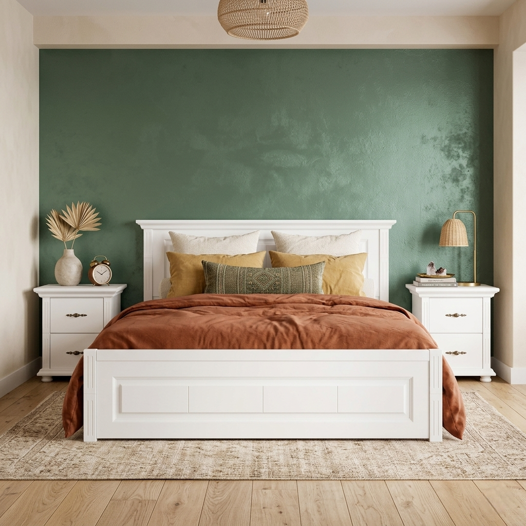 Tăblia redusă creează un efect vizual aerisit și permite poziționarea patului în spații dificile: sub ferestre, în mansarde sau în dormitoare compacte.
