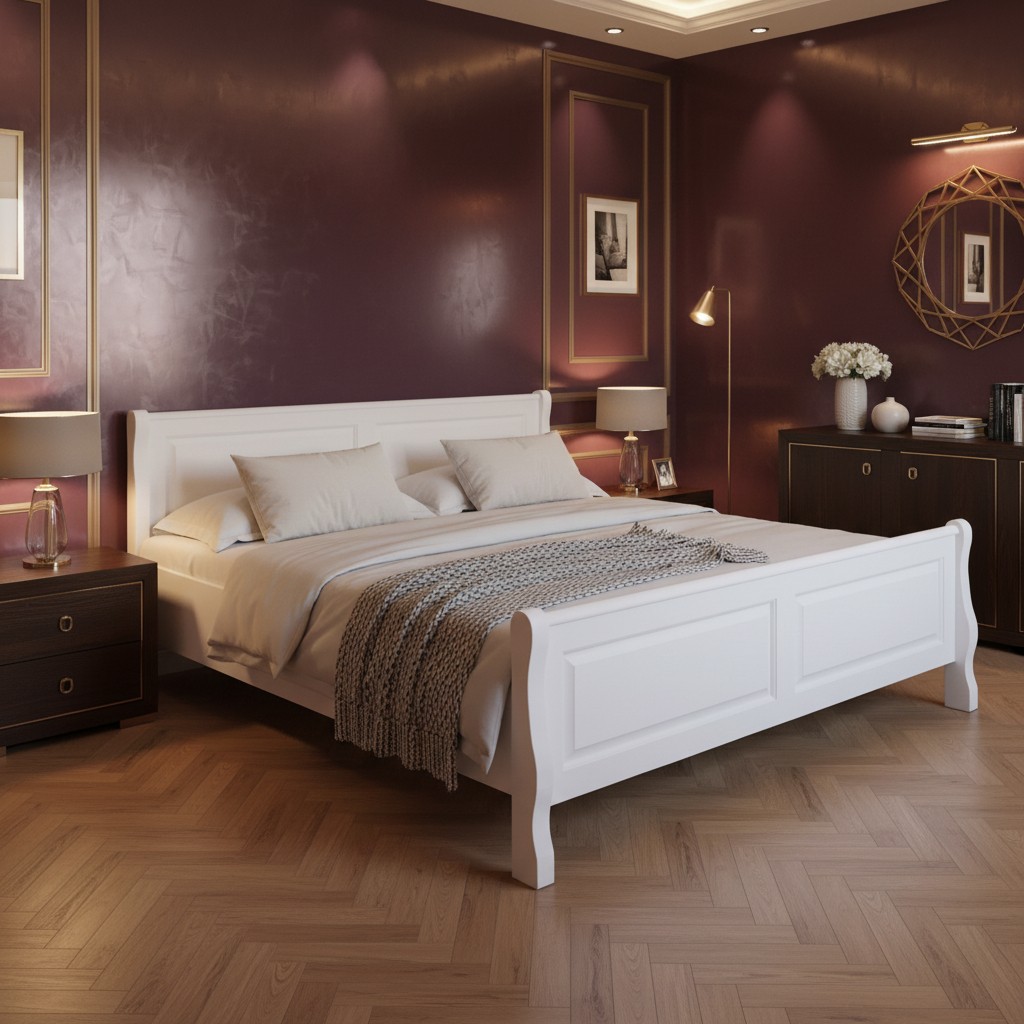Liniile curate, tăbliile bine proporționate și finisajul atent aplicat oferă patului un aspect armonios, potrivit atât pentru interioare clasice, cât și pentru amenajări contemporane. Culoarea albă conferă luminozitate și senzația de spațiu aerisit.