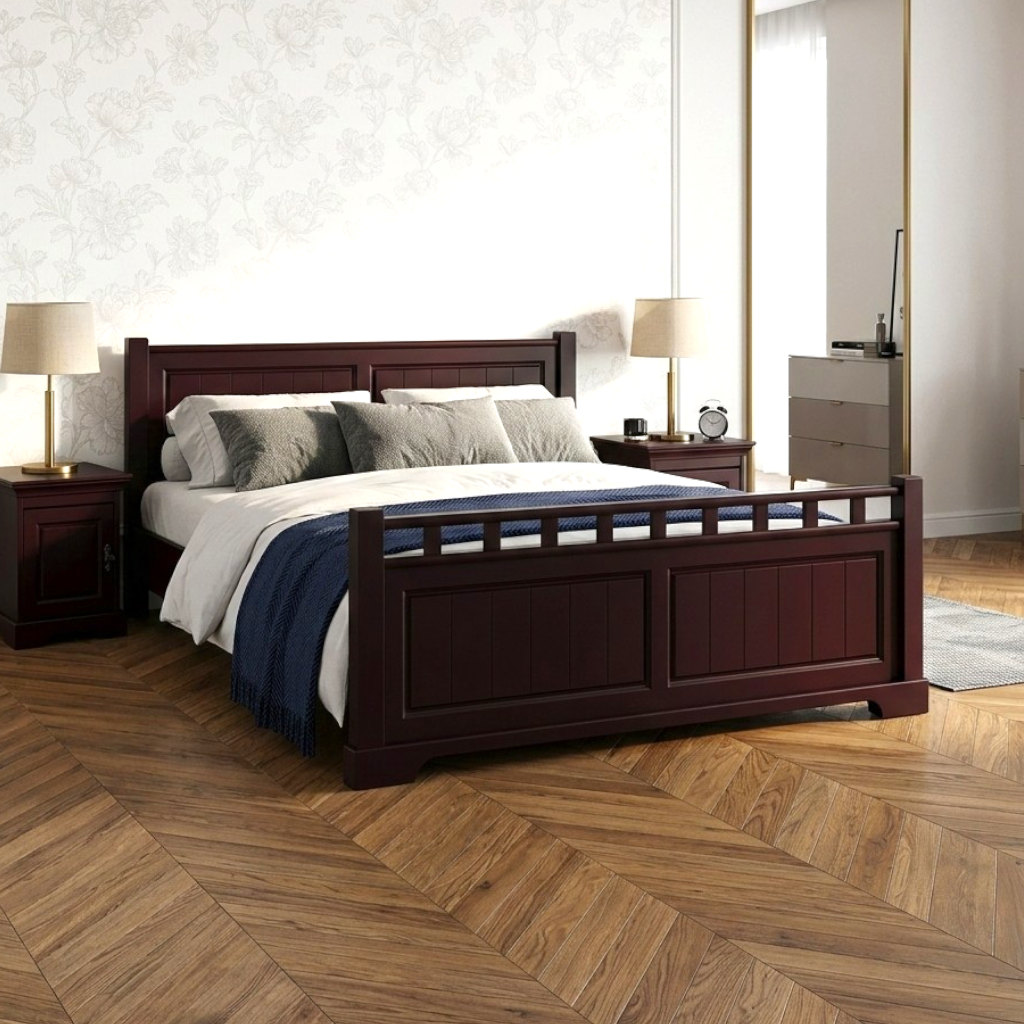 Patul Cleo este realizat din lemn masiv de molid și finisat în nuanța elegantă Bordo Imperial RAL 3007, o eleganta si de impact, ușor de integrat în dormitoare clasice si premium sau alte amenajări.