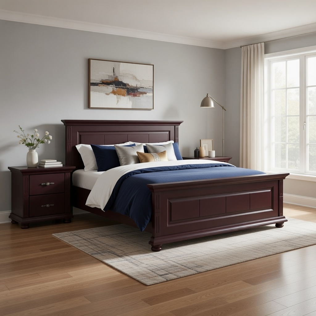 Patul Mara Bordo Imperial este realizat din lemn masiv de molid, evidențiind un design clasic cu panouri profilate și proporții echilibrate. Nuanța Bordo Imperial oferă profunzime și eleganță dormitorului, fiind potrivită pentru amenajări rafinate sau interioare cu accente contrastante.