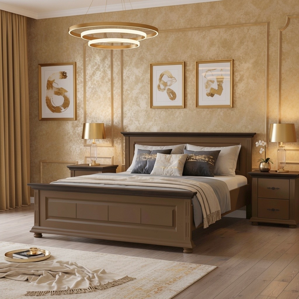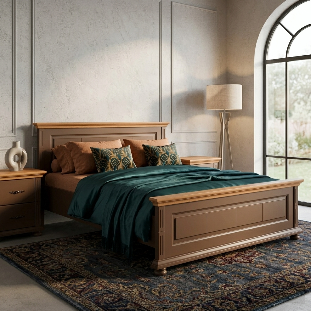 Patul Mara Terra Broen este realizat din lemn masiv de molid, evidențiind un design clasic cu panouri profilate și proporții echilibrate. Nuanța Terra Brown oferă naturalete și eleganță dormitorului, fiind potrivită pentru amenajări calde, naturale sau interioare cu accente contrastante.