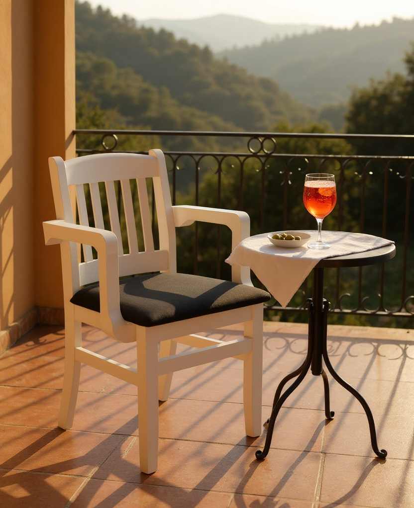 Scaun din lemn BOLERO tapitat cu brate - Fabricat din lemn masiv de fag, acest scaun este construit pentru a dura. Lacul transparent pe bază de apă oferă o protecție de lungă durată și pune în valoare frumusețea naturală a lemnului.