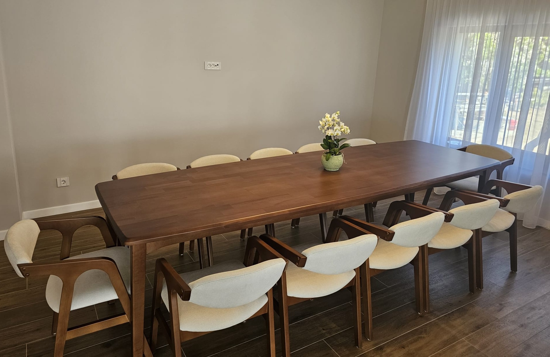 Un scaun modern și confortabil, confecționat din lemn masiv de fag, cunoscut pentru durabilitatea sa excepțională. Designul minimalist și liniile curate îl fac perfect pentru a completa orice decor modern.
