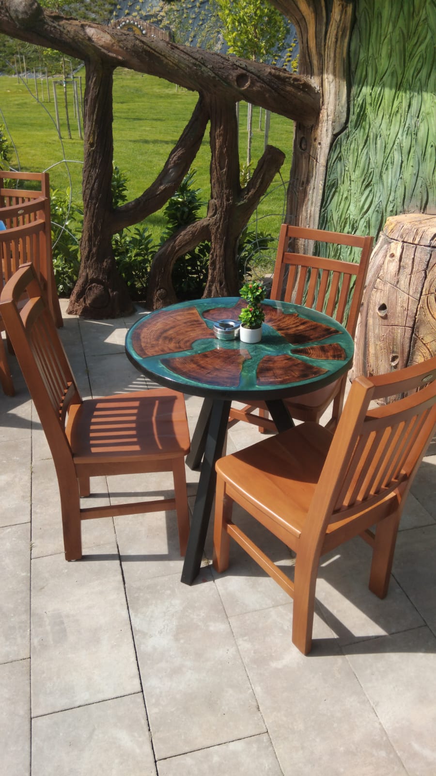 Este fabricat din lemn de fag masiv, garantând o rezistență deosebită în timp. Sezutul este masiv, iar spătarul este realizat tot din lemn masiv, oferind o susținere excelentă pentru spate.