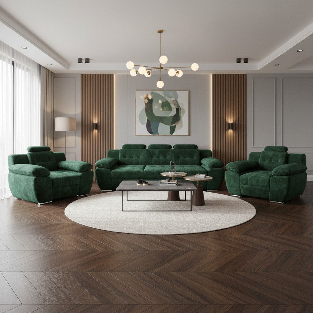 Setul LORD este alegerea perfectă pentru un living modern și confortabil. Combinând o canapea extensibilă elegantă cu două fotolii confortabile, acest set oferă spațiul ideal pentru relaxare zilnică și pentru momentele petrecute alături de familie sau prieteni.