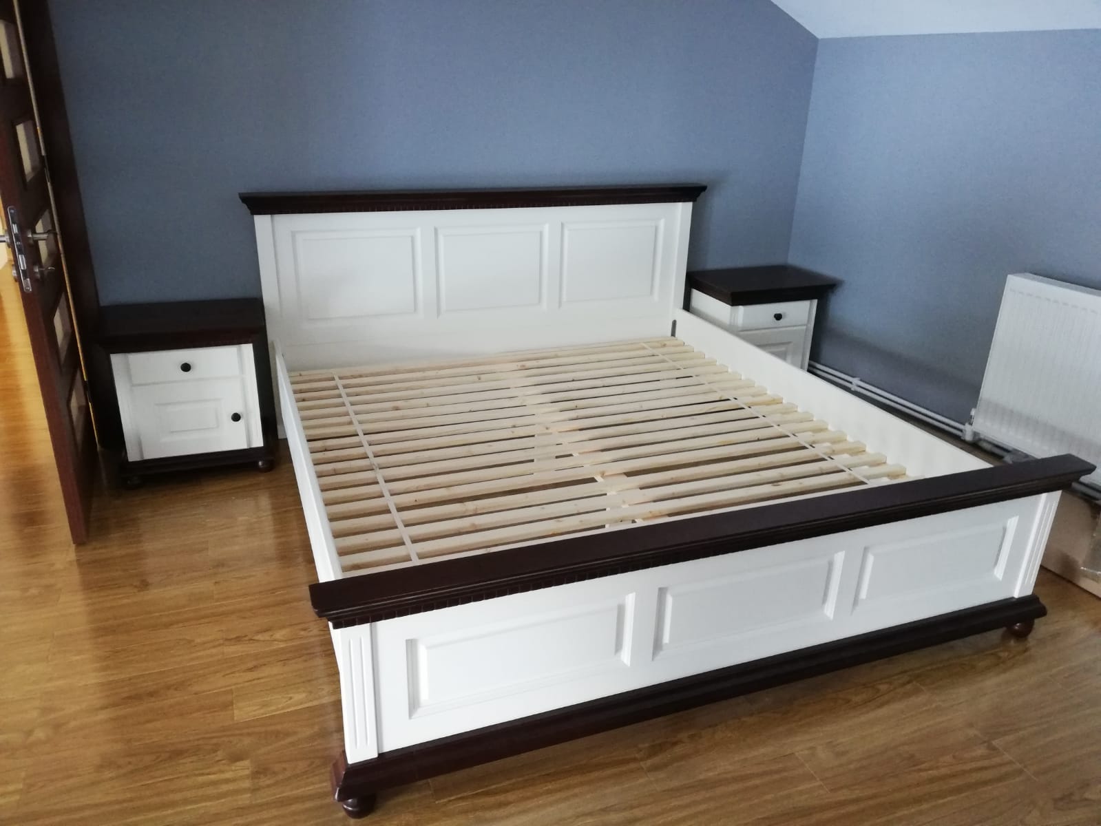 Dormitorul din lemn masiv Bucov alb cu nuc este o soluție elegantă și rafinată pentru amenajarea unui spațiu de odihnă Realizat integral din lemn masiv vopsit alb cu nuc acest mobilier aduce un plus de căldură și stil oricărui dormitor oferind un echilibru perfect între estetica clasică și funcționalitatea modernă