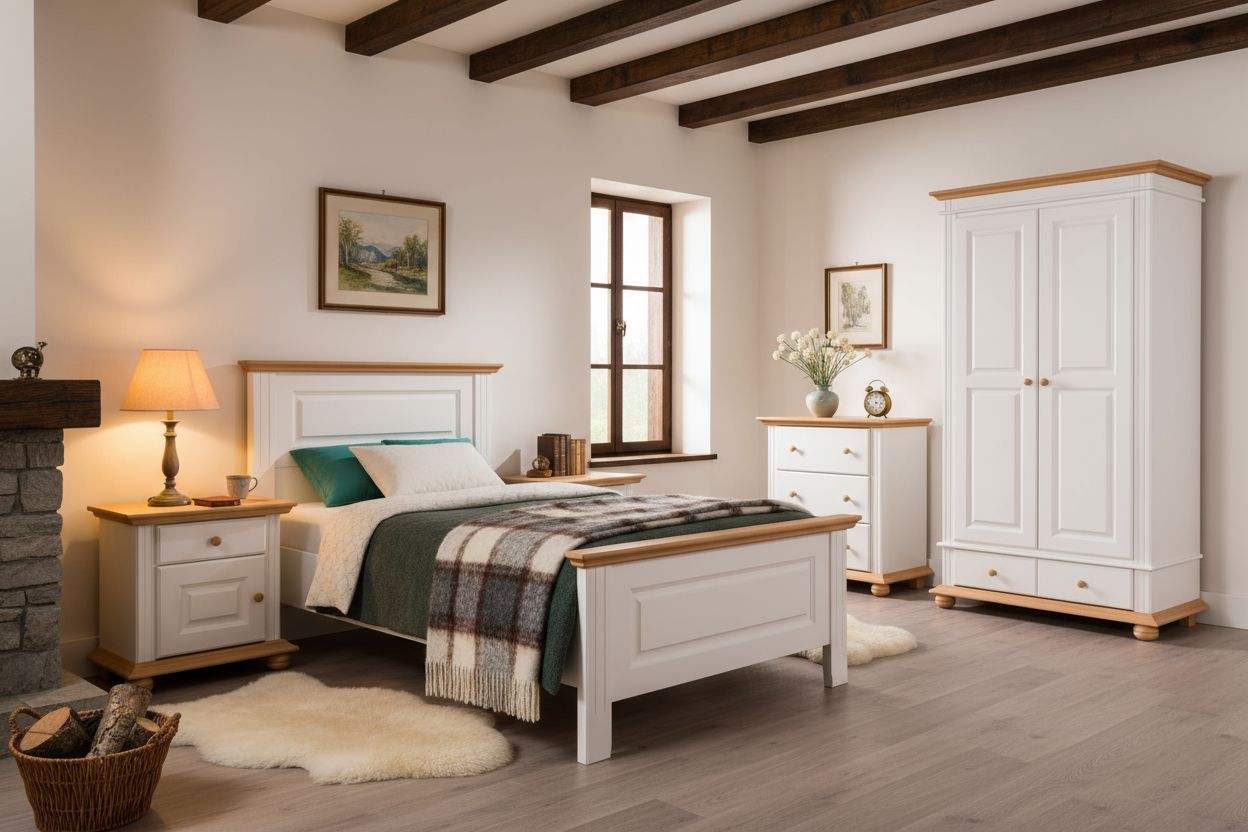 Dormitorul SEVA 4 îmbină tradiția mobilierului din lemn masiv cu rafinamentul detaliilor actuale. Este o alegere ideală pentru cei care caută un ambient natural, elegant și plin de caracter.