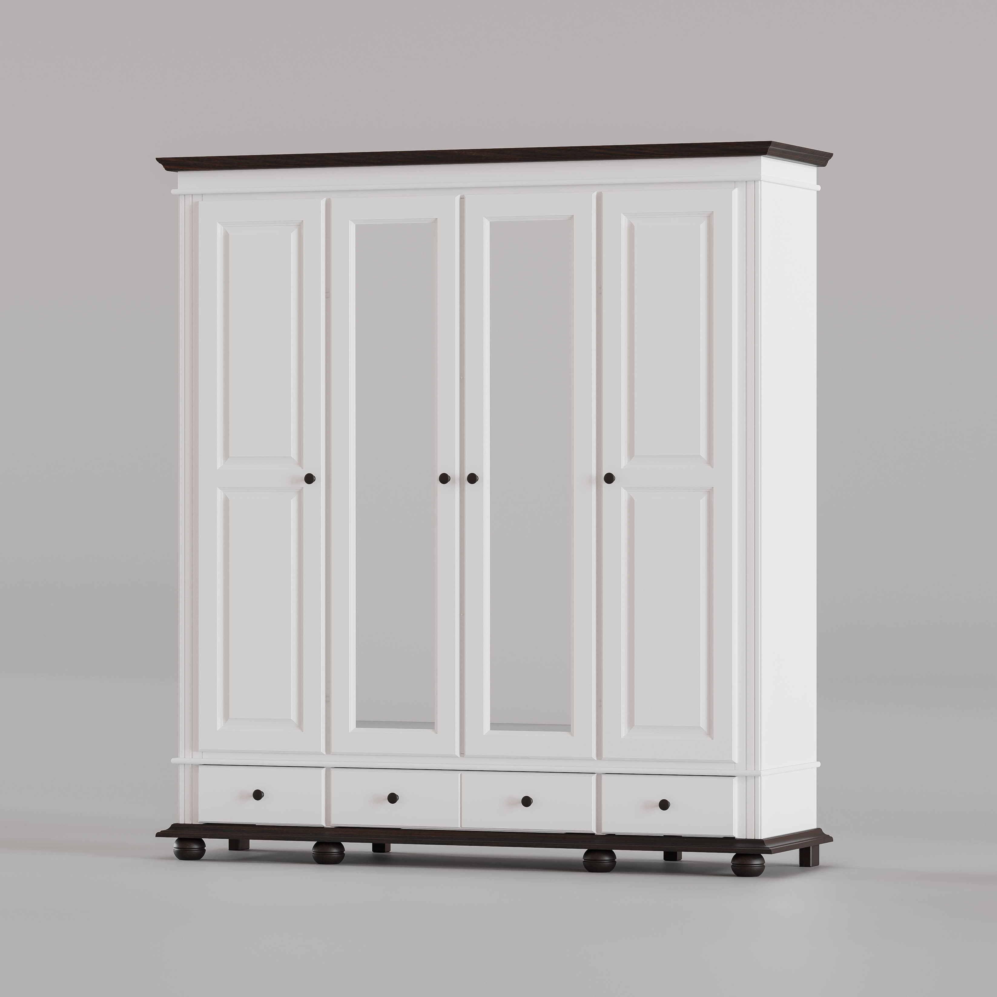 Dulap SEVA 4 uși cu oglindă Dulap spațios cu 4 uși (2 uși cu oglindă integrală + 2 uși pline), sertare dedesubt și interior bine compartimentat. Dimensiuni generoase pentru haine, lenjerie și accesorii.