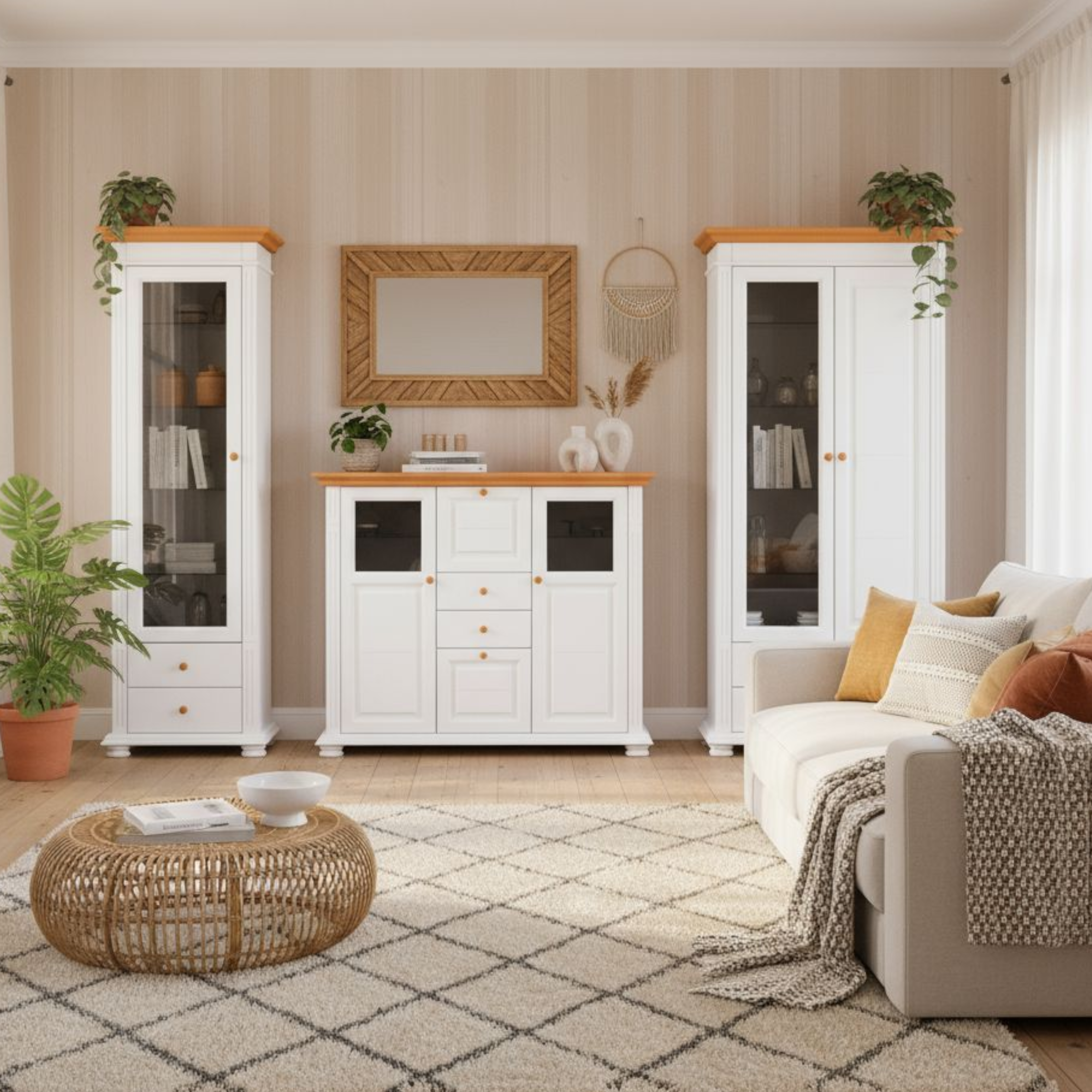 Colecția Mara: Mobilier de living elegant din lemn masiv, perfect pentru un spațiu luminos și rafinat