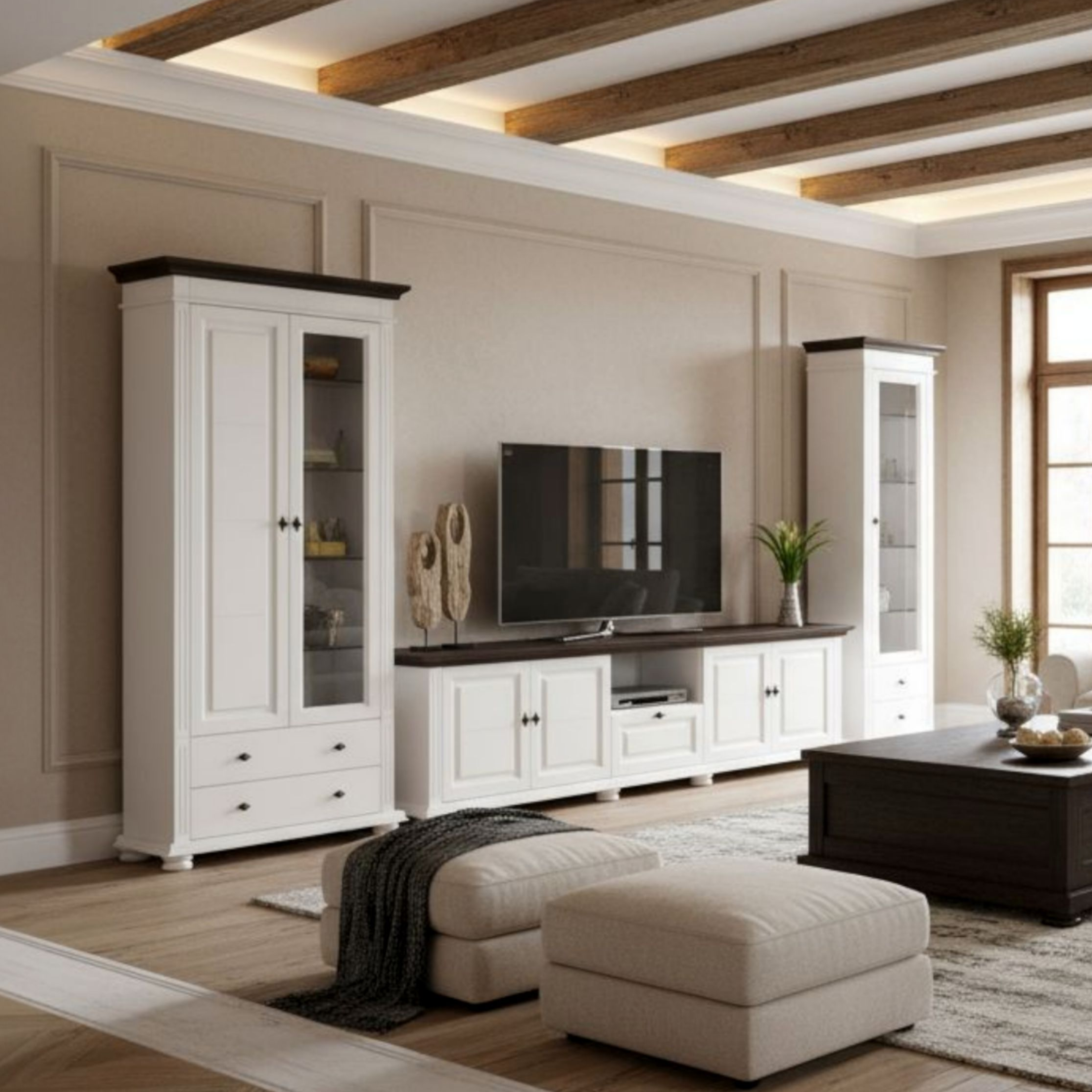 Setul de living MARA din lemn masiv este conceput pentru a aduce un plus de lumină, ordine și rafinament în zona de zi. Cu un design atemporal, inspirat din stilul clasic-modern, acest set se integrează armonios atât în interioare moderne, cât și în amenajări cu accente naturale sau scandinave.